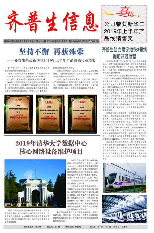 堅持不懈 再獲殊榮 ------齊普生榮獲新華三2019年上半年產品線銷售業績獎